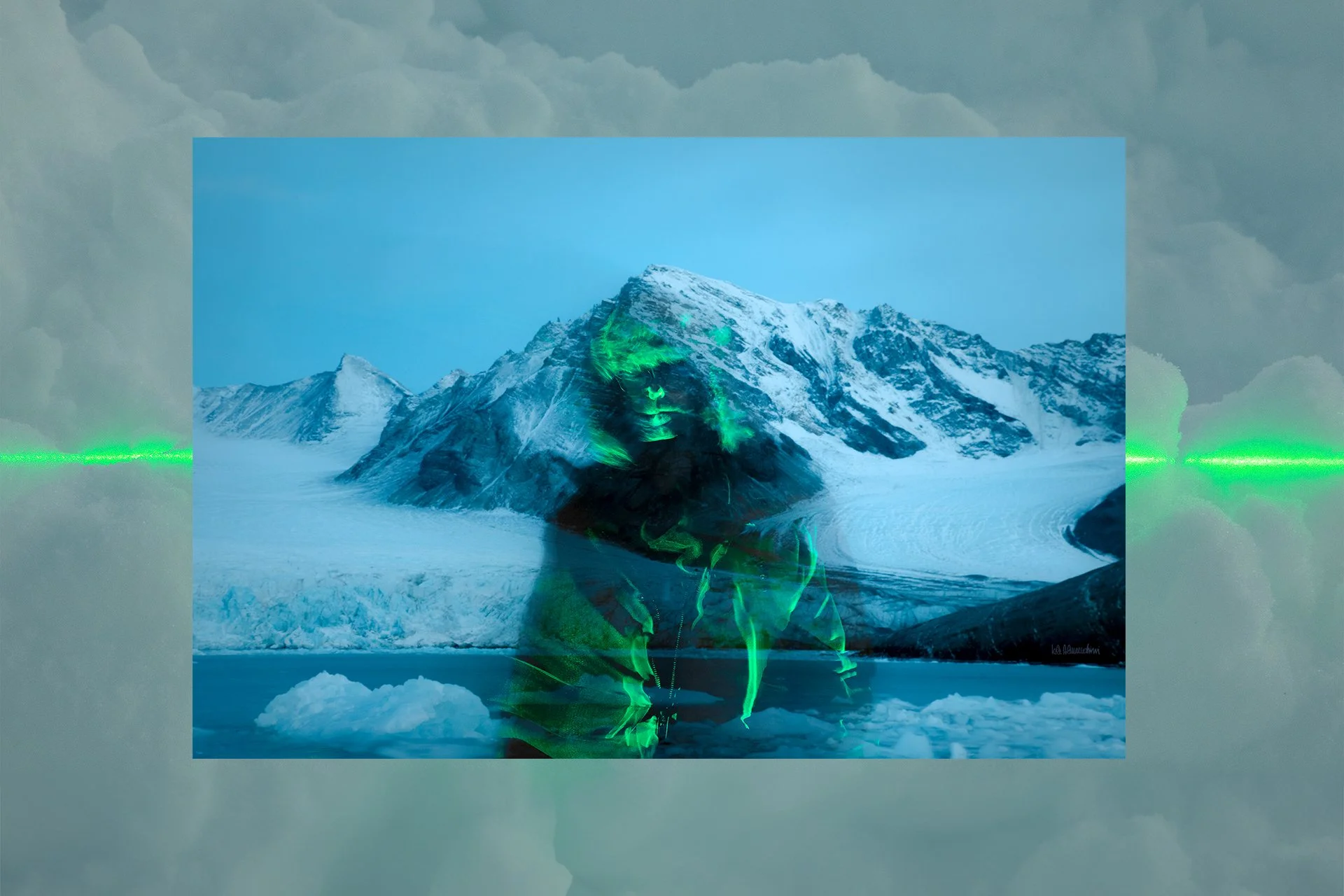 In the Arctic, I sought to record not just landscapes but the luminous footprints of human presence — traces made visible through the Laser Plane, the technology I developed in 2000 with Ed Mannery at the Bellevue Art Museum. Visitors may have their own ioleogramsTM taken, images that reveal subtle imprints of movement and energy when they cross the planes.