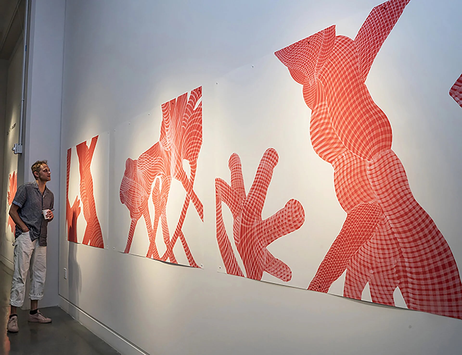 Statement / My use of the color vermilion began with a powerful childhood memory, which morphed into using only that color for the last six years. Vermilion is replete with associations to family, as well as geology, culture, and art history.